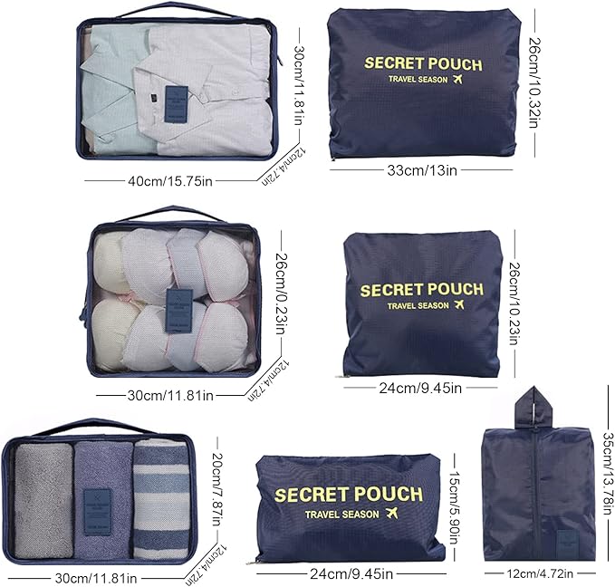 💼 Este completo set incluye bolsas de distintos tamaños ideales para ropa, ropa interior, calzado, cosméticos y lavandería. Todo cabe, todo se ve, ¡y nada se pierde!